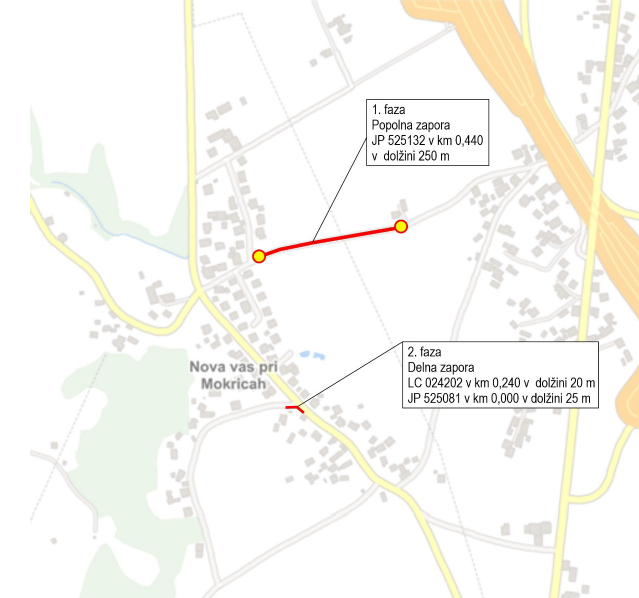 Zapora je nujna zaradi izgradnje novega elektrovoda in transformatorske postaje TP Nova vas Mokrice, s čimer se bo izboljšala zanesljivost in varnost oskrbe z električno energijo na območju Nove vasi.