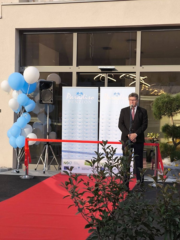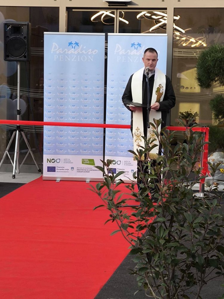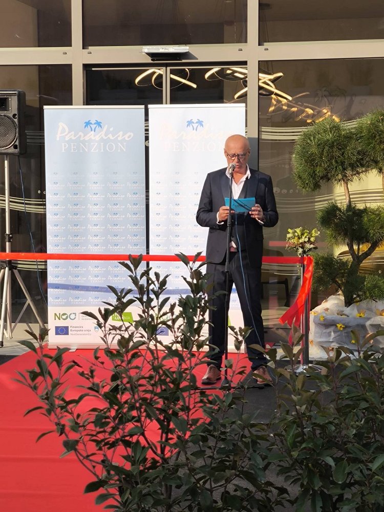 Župan je direktorju podjetja Terme Paradiso Marjanu Cvetkoviču čestital za pomembno pridobitev z željo, da nadaljuje uspešno pot podjetja. Novo pridobitev je blagoslovil brežiški župnik Ivan Šumljak, sledila je simbolična predaja penziona v namen z rezanjem traku.