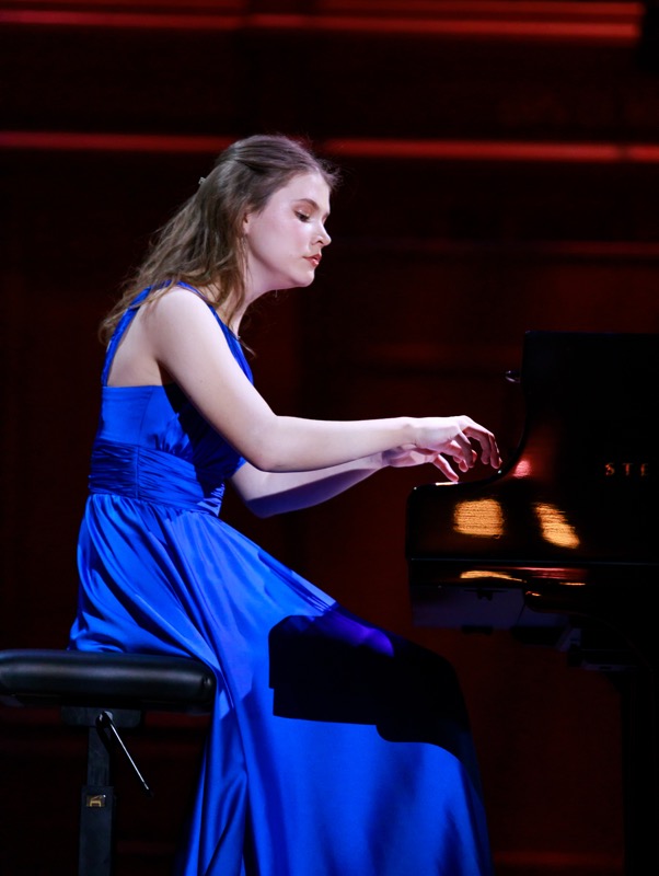 Еще одно малоизвестное сочинение Ляпунова включила в свой репертуар Аксинья Потёмкина. Зато другие произведения, вылепленные руками пианистки, были как раз-таки направлены на сознательное покорение публики. Заостренные ритмы в Танце №2 мексиканского композитора Артуро Маркеса воздействовали на тело как хмель. Обработка знаменитого «Вальса-фантазии» Михаила Глинки изобиловала росчерком пассажей и других виртуозных эффектов. Аксинья играючи справилась со всеми трудностями, вдохнула в музыку собственный огонь, а картинные завершения каждого номера превратили выступление исполнительницы в яркое театральное действо.