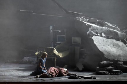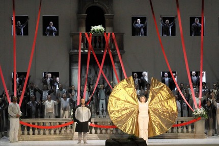 Дело же здесь не в личных привязанностях или симпатиях. Дело в том, что если вы из-под дома вынете фундамент, то он у вас непременно рухнет. Именно поэтому, разрушая институциональный пафос партитуры, режиссёр с математической неизбежностью разрушает основу собственного же произведения – его музыкальный фундамент. И тут общее впечатление от постановки не спасают даже блестящие вокальные работы.