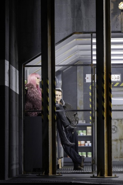 Серая коробка бетонного бункера, в котором медленно сходят с ума персонажи, никак не вяжется с карнавальной эстетикой оперы Генделя. Ещё раз подчеркну: опера Генделя – это очень дорогая (по количеству контртеноров — самых высокооплачиваемых голосов XVIII века) — карнавальная партитура, в которой «богатые тоже плачут».