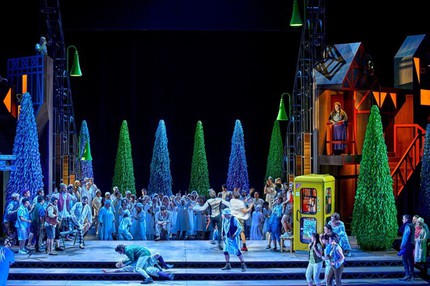 Мизансцены тоже на редкость узнаваемы: вы словно переноситесь во времена, когда в оперном театре не было ещё не только Бийейто, Чернякова и Коски, но и Дзеффирелли и Стрелера даже ещё не было. Актерское прочтение отдано полностью на откуп певцам, которые перевоплощаются в оперных персонажей с тем же необходимым азартом, с каким дети в отсутствие взрослых примеряют чужие вещи. Местами это было забавно, местами создавало приподнятое настроение.
