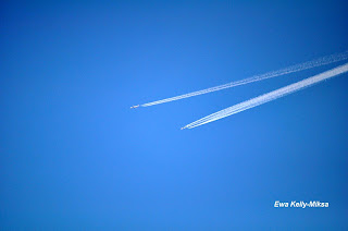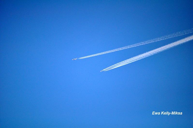 Last Saturday we had blue sky for most of the day. I was so suprised to see how many airplanes fly over my town. They were coming and going to so many diferent directions.