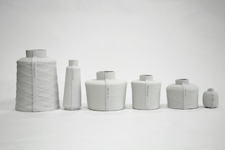 The series, 'Spool' vases arose from my interest and love for textiles. The design was inspired by the forms and structures of industrial yarn bobbins used in the weaving or knitting of fabrics. Varying in size, texture and structure, the family of vases is made of white porcelain. There are currently seven different models available.