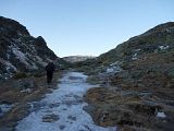 El espacio que me habían asignado para dormir aquella noche era, en términos volumétricos, adecuado a las dimensiones de mi cuerpo, pero completamente incompatible con su forma antropomorfa y solo conseguí adaptarme a sus características gracias a que mis costillas hicieron hueco a una de las patas de la mesa que me daba cobijo. De ahí que al incorporarme esa mañana mis huesos respondieron con un fuerte chasquido a la decisión de colocar mi colchón bajo el mobiliario del comedor. Pero en unos minutos de trabajo en equipo se ordenaron mesas y sillas, todo quedó dispuesto para el desayuno, el olor a café creó un ambiente de lo más acogedor y nosotros dimos cuenta de todos los alimentos que teníamos a vista, vamos que nos pusimos la botas, en todos los sentidos. Gaspar había estado por aquí en un intento a Torre Cerredo, pero nos indicaron que había bastante nieve y dado que nosotros únicamente teníamos unas zapatillas de trekking como calzado decidimos sugerir al guarda que nos recomendara una ascensión. Pese a que adoptamos la posición de rudos y aguerridos montañeros, nos recomendó una ascensión realmente fácil: la Torre de la Pardida, para después seguir camino del Urriello, recorrido altamente recomendable cuyas vistas son difícilmente mejorables y al que tendremos que volver en invierno. Oscuras nubes se cernían sobre nuestras cabezas, pero no alteraban nuestro ánimo y buen humor y entre chorradas varias partimos.