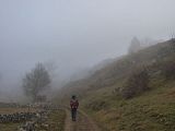 La niebla entraba y salía como un efecto especial en una película de suspense y le daba al tema una bonita sensación. Yo me entretenía con esas cosas tratando de no pensar en que hacía más de un año que no me calzaba los crampones y esperando que esto del alpinismo sea como andar en bicicleta, que no se olvida. Tampoco las tenía todas conmigo en el tema físico, pero mi faceta de "runner", a la que últimamente dedico más tiempo, me daba algo más de confianza.