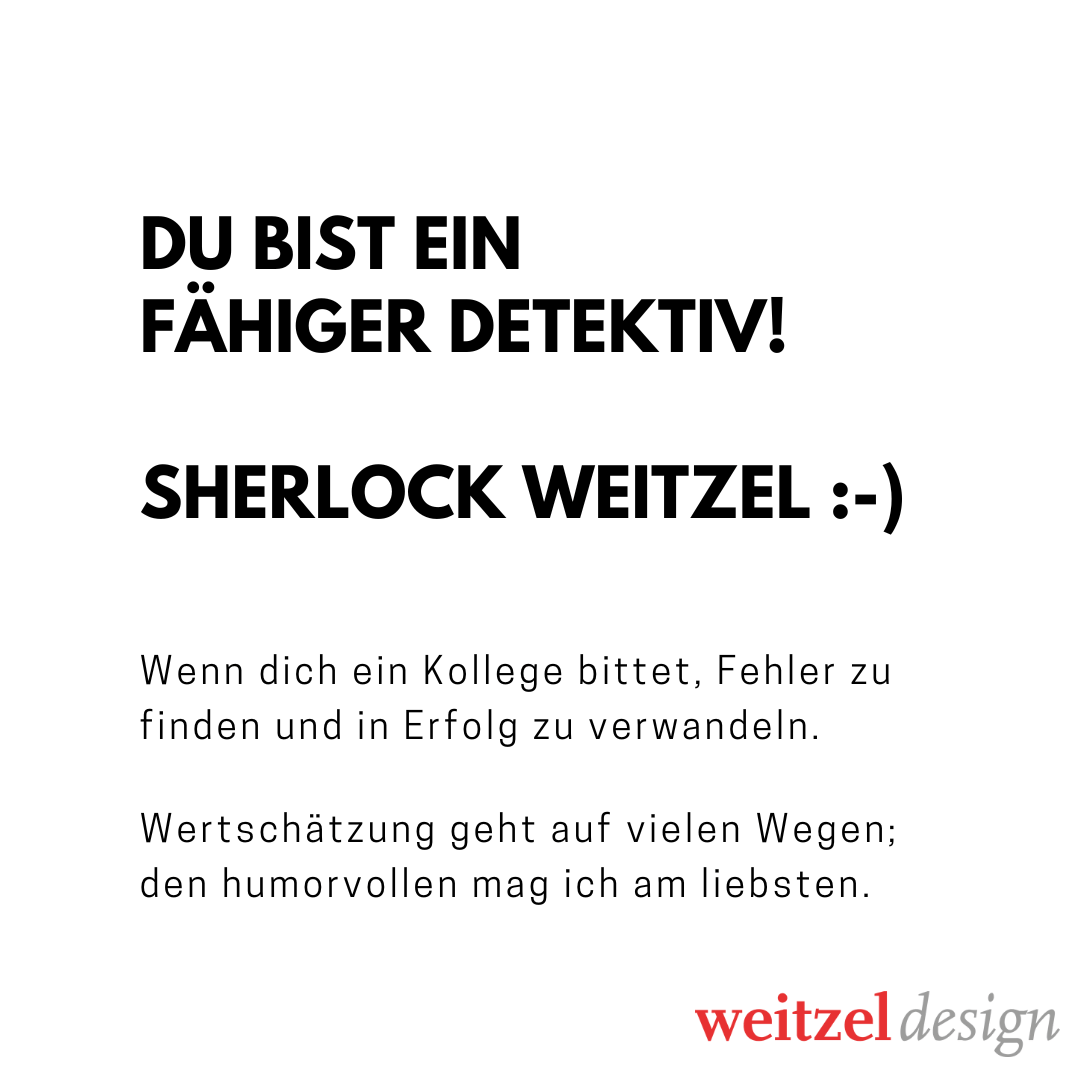 Wenn dich ein Kollege bittet, Fehler zu finden und in Erfolg zu verwandeln.
