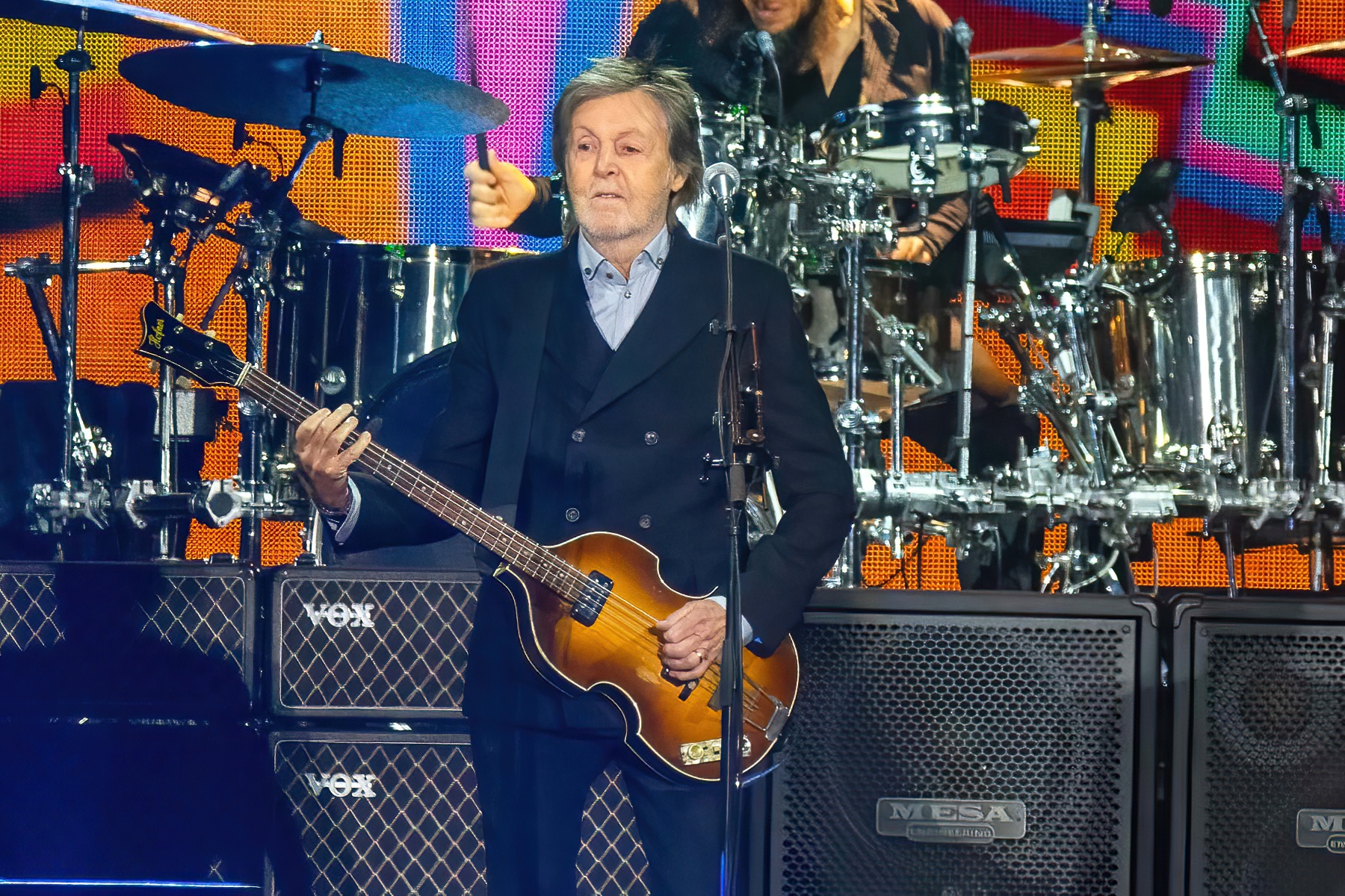 The band swiftly returned, the original stage set up did as well and they wasted no time before going into “Here Today” which led to “Now and Then” into “Lady Madonna” and then to “Jet.” This was followed by a bit of a surprise “For the Benefit of Mr. Kite.” The song is one of The Beatles’ strangest and was a delight to see live, McCartney’s enjoyment of the moment palpable.