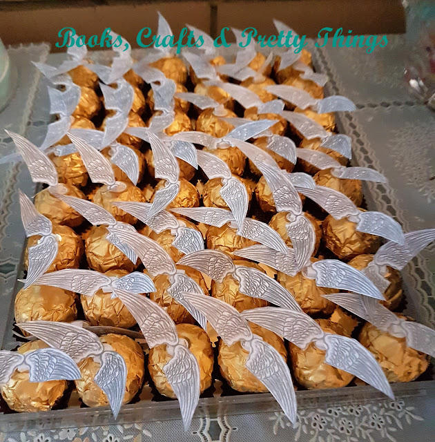 Food included all of the usual party fare such as pizza, wraps, sausage rolls, fruits, meats and cheeses, and a dim sum selection. My Brother-in-law and sister made some yummy desserts, and my friend brought some Harry Potter cupcakes. I threw together a mudcake at the last minute because my hubby thought the grandkids might enjoy singing "Happy Birthday". We also had far too many sweets including chocolate frogs, pirates gold, Jack's Beans, the Evil Queen's hearts and Golden Snitches to name a few.